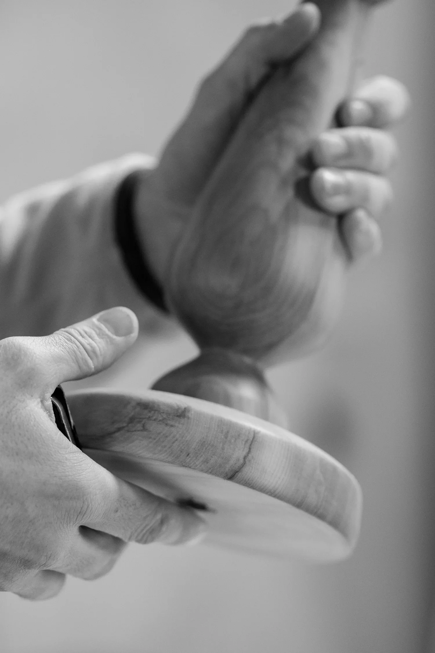 A taller variation on the form of the Rimu Teardrop, the Rimu Spire lamp from Nick Erickson Studios is crafted from reclaimed framing timber. With strikingly elegant form, it showcases subtle, linear grain striations. Featuring a lampshade hand dyed in avocado pips and skins that result in a soft and subtle pink tone. It's distinctive allure and warm, inviting glow makes it a truly unique addition to any space.